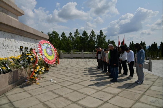 在烈士陵园革命英雄纪念碑前,全体干部怀着无比崇敬的心情,向纪念碑敬献花篮,肃穆默哀,深切悼念为革命事业前赴后继、英勇献身的革命烈士,表达对他们的哀思之情。